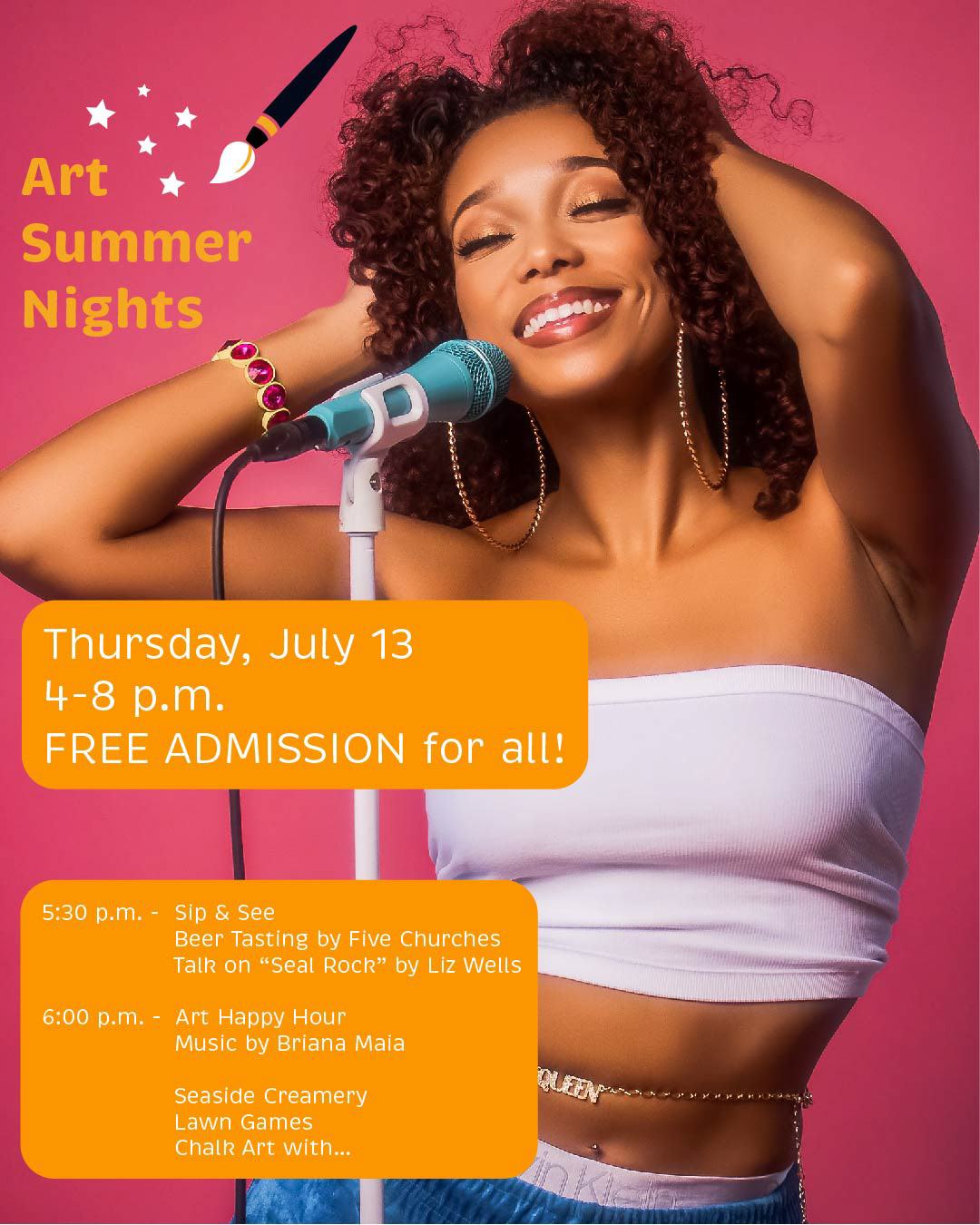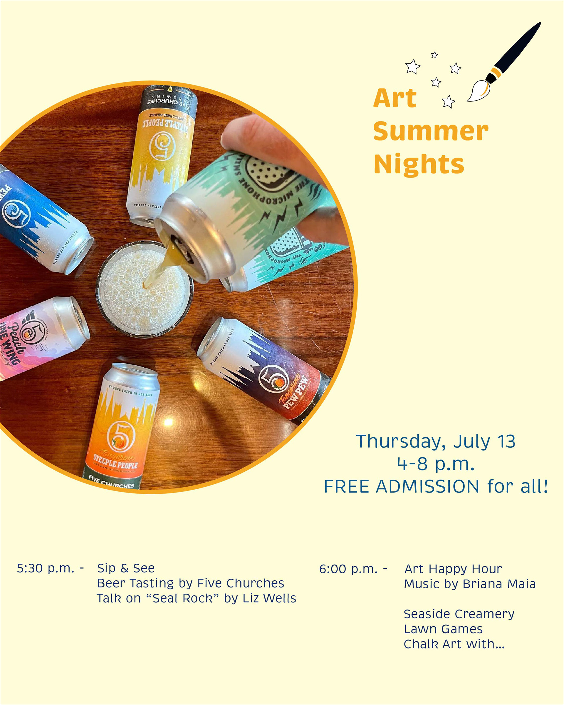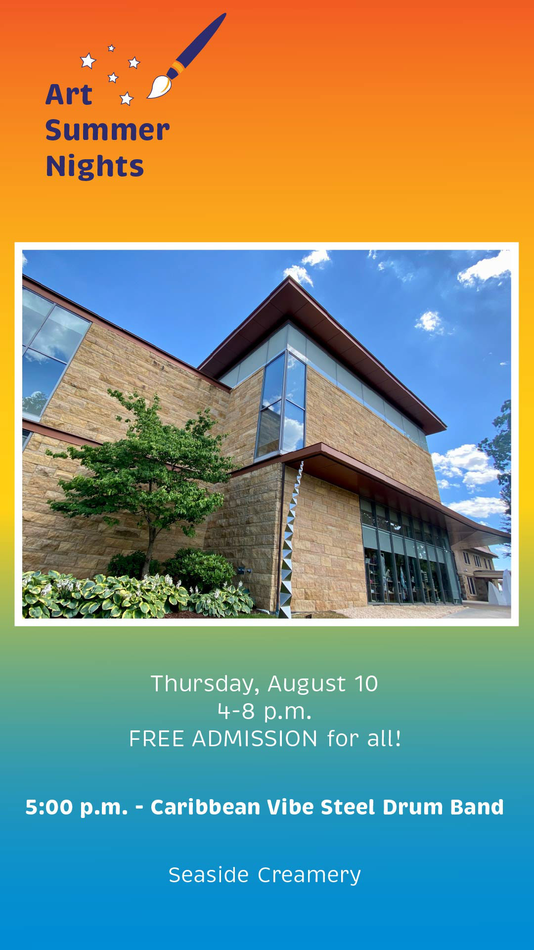 Slides for Instagram stories promoting the New Britain Museum of American Art's Art Summer Nights. Logo and slides created in Adobe Illustrator. Copy and photos provided by the museum's Director of Communication and Visitor Experience.